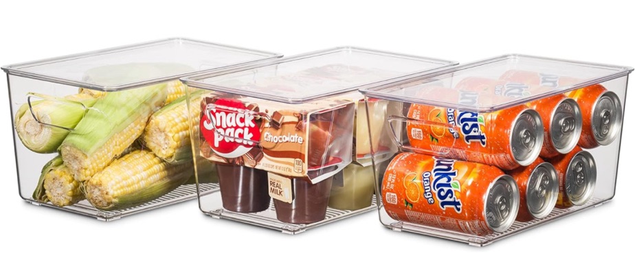 These are my other go-tos for fridge and pantry. They’re the right size to fit most things and keep the chaos of yogurt containers and large veggies (like peppers and tomatoes) easily accessible