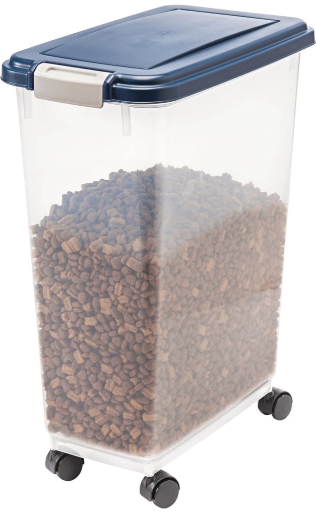 Yes, I use the pet food container for pet food. Know what else I use it for? All purpose flour, sugar, and brown sugar. Because I got tired of messing with 13 tiny bags of flour so buying in bulk is my jam. This has a good seal, is rated for human food storage, and we just roll it out to the counter when it’s baking time and then roll it back in when we’re done. Easy-peasy.